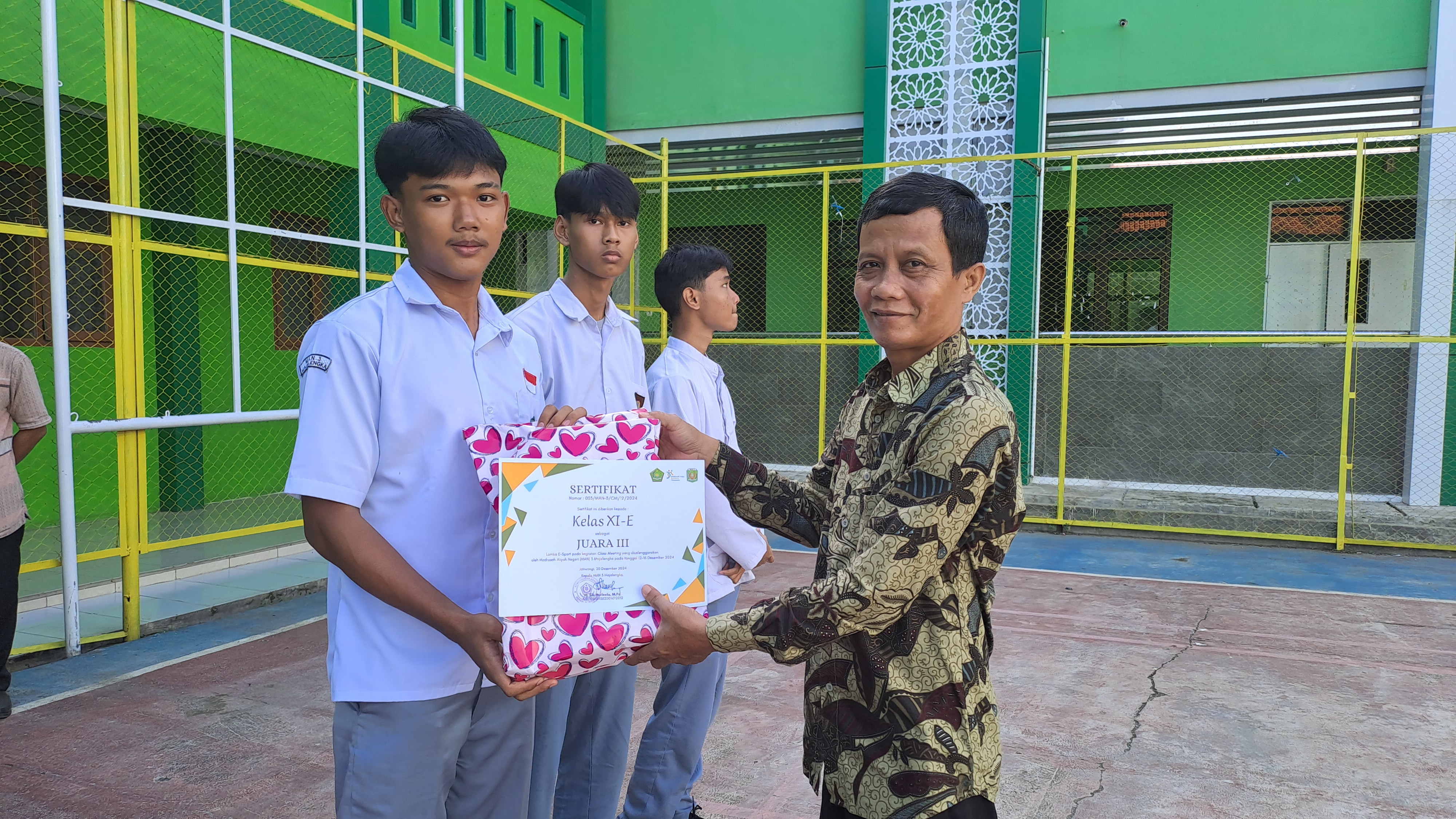 Waka Kesiswaan, Sapi’i, S.Pd.I., mengumumkan hasil lomba class meeting yang diadakan sebagai ajang kreativitas dan olahraga antar kelas. Berikut para pemenangnya: